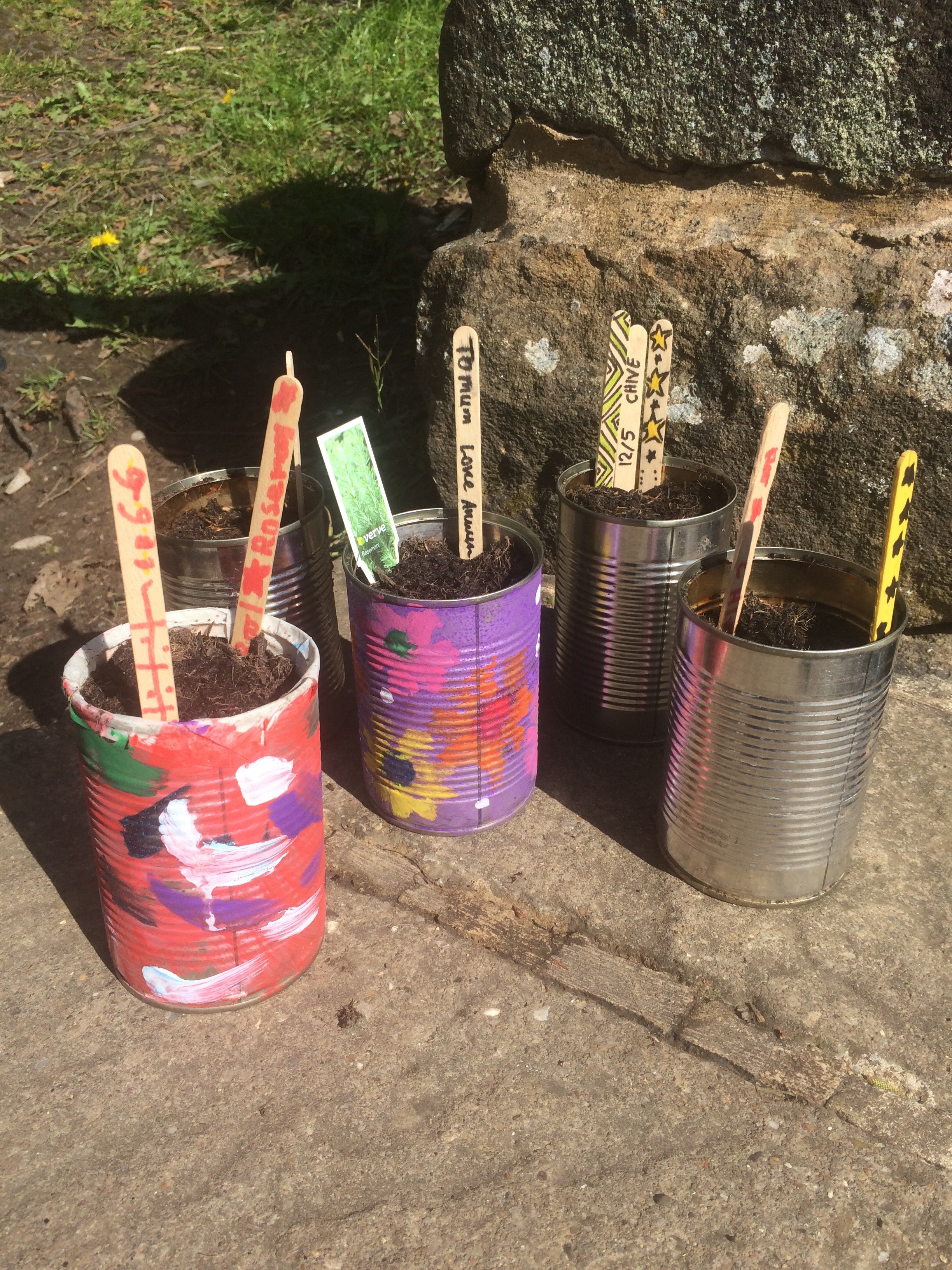 tin planters… let’s see if our herbs grow well